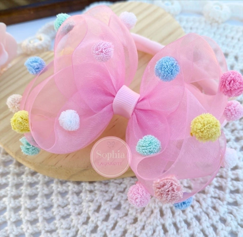 Laço voil pompons.