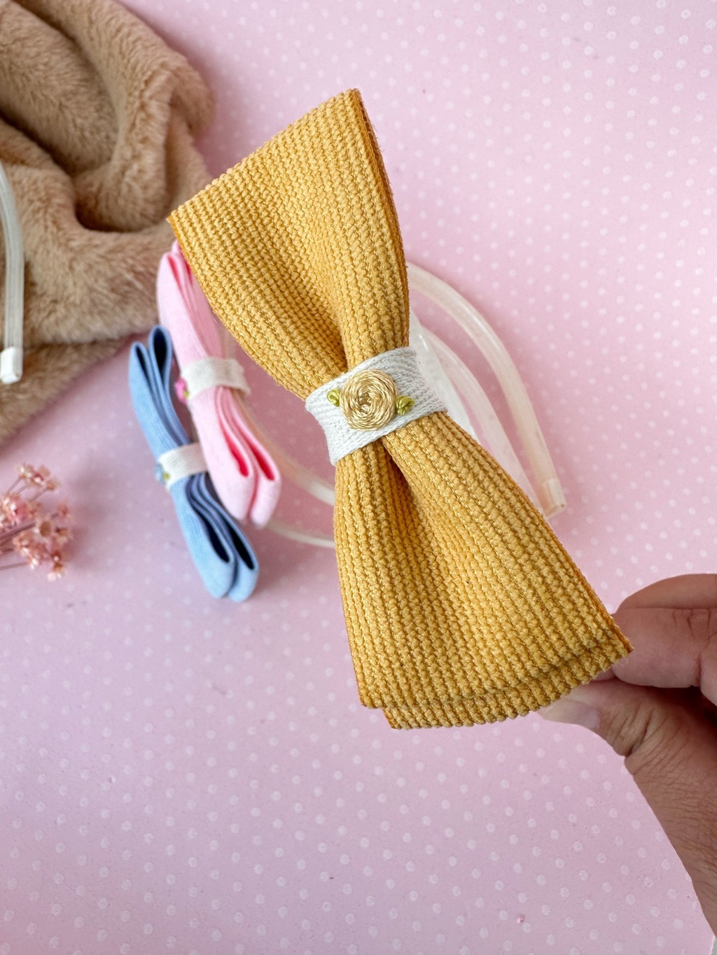 Tiara com laço Juju e bordado a mão.